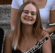 Entre février 2019 – juillet 2021, elle a suivi les cours au conservatoire de Fribourg et elle a obtenu un certificat préprofessionnel en hautbois.